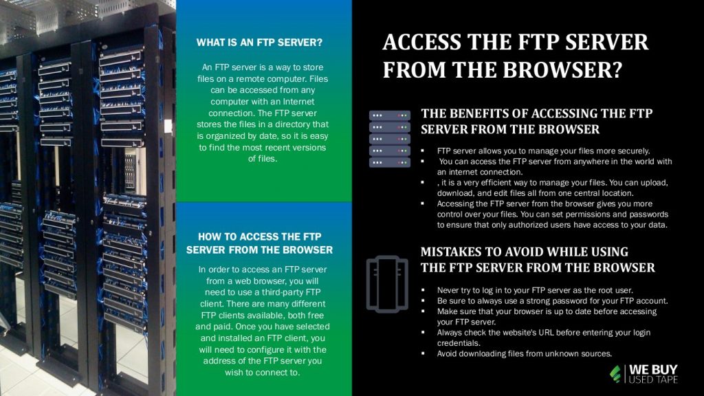 Finally, accessing the FTP server from the browser gives you more control over your files. You can set permissions and passwords to ensure that only authorized users have access to your data. When you access the FTP server from the browser, all of your data is encrypted and stored locally on your computer. This means that if someone were to hack into your account, they would not be able to access your files.