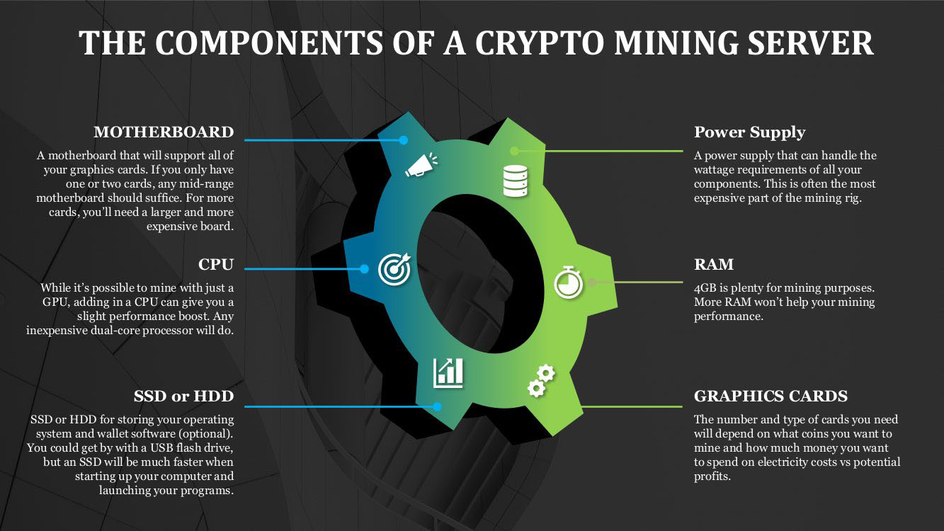To build a cryptocurrency mining server, you’ll need a few things: