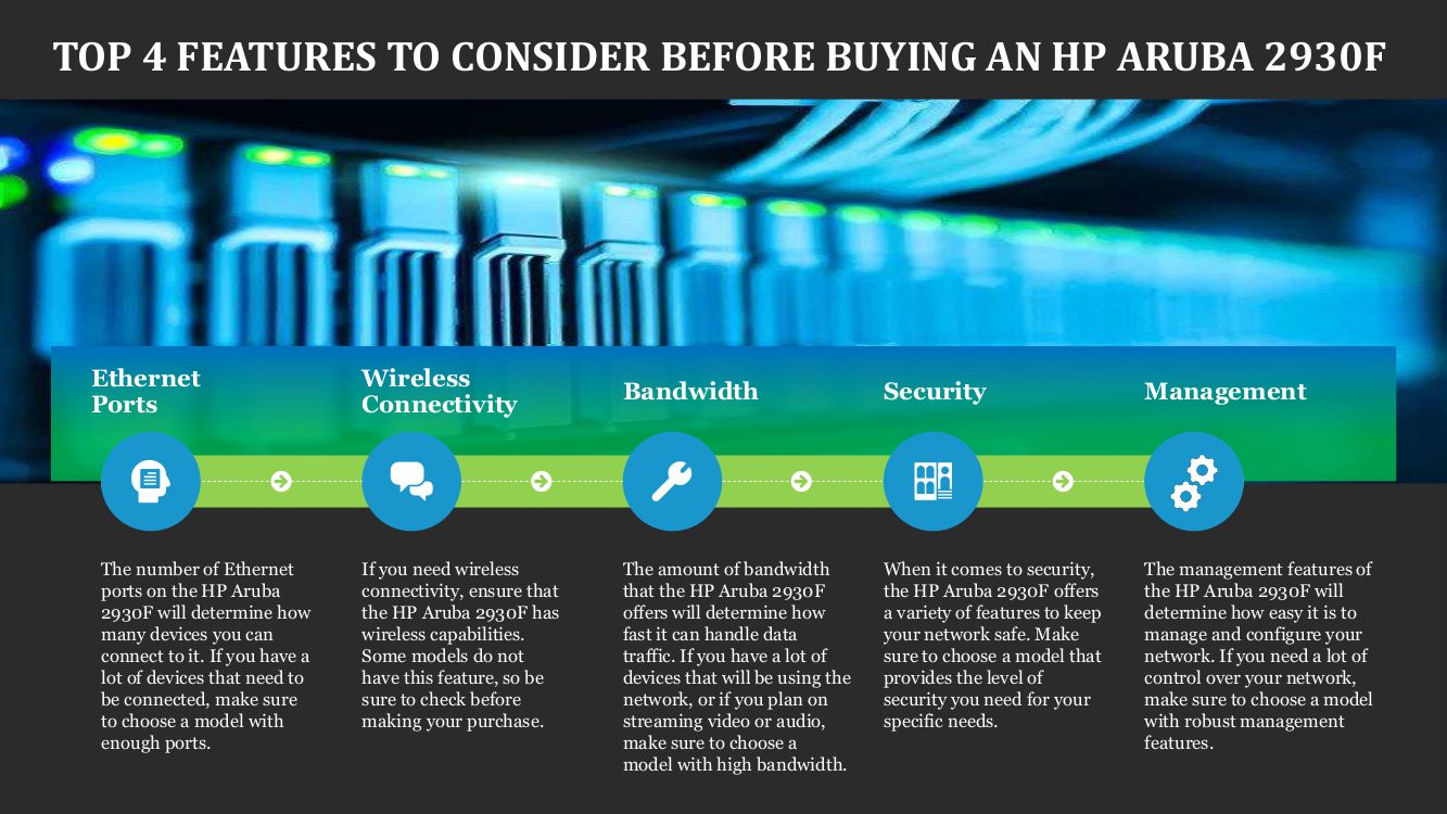 With so many different HP Aruba 2930F models on the market, it can be tough to decide which one is right for you. That’s why we’ve put together a list of the top 5 features to consider before making your purchase. We hope this list will help you narrow down your choices and find the perfect HP Aruba 2930F for your needs.